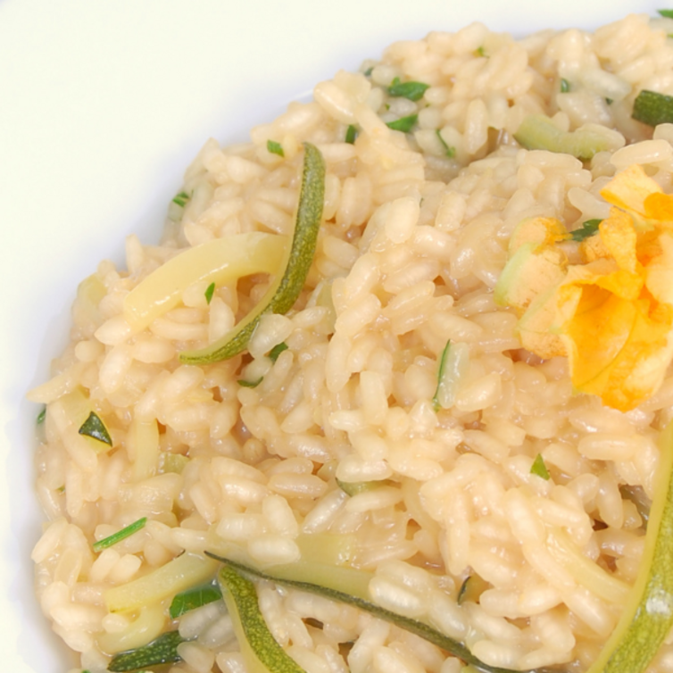 Risotto cremoso senza lattosio con zucchine e contorno di carote e spinaci