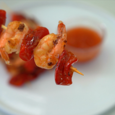 Spiedini di code di mazzancolle e peperoni