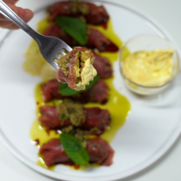 Involtini di carpaccio al pesto