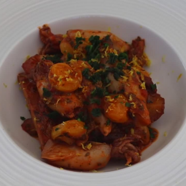 Calamari con patate al sugo